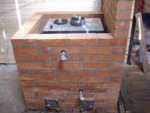 Преимуществом этой конструкции является простота изготовления и возможность монтажа варочной поверхности. Недостаток – большой расход топлива.