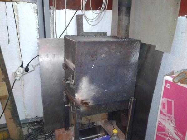 Из листового метала толщиной 3 мм, был сварен корпус печи, сделана дверца для топки.