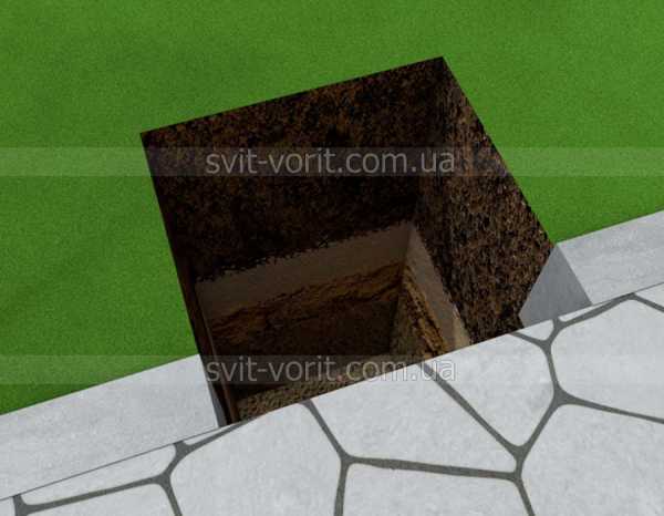 - В отмеченных точках выкопать котлованы глубиной около 1,5 м. Диаметр ям должен превышать сечение профильной трубы в два раза.