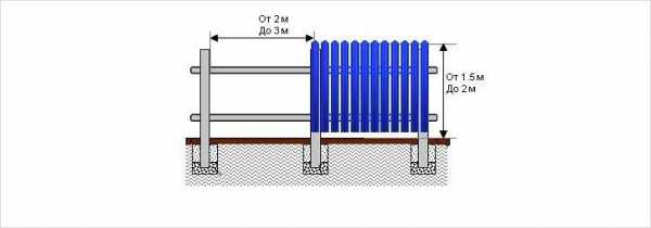 Расстояние между опорами не должно быть меньше 2-3 метров.