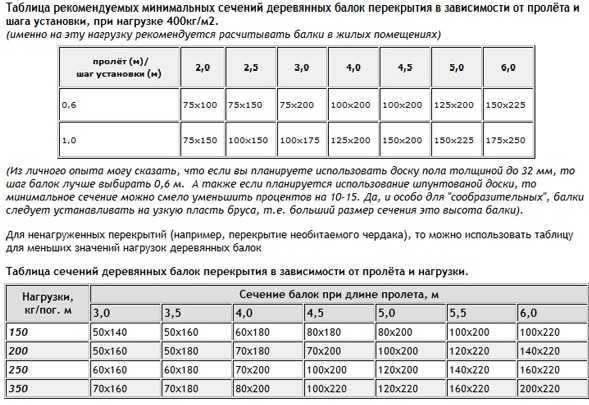 Обратите внимание! Чем больше нагрузка на перекрытие – тем больше должно быть сечение балок.