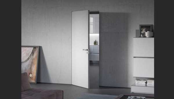 Конструкции дверей изготавливаются распашными (имеют одну или две створки), маятниковыми (открываются вовнутрь и наружу), раздвижными, откатными (прячутся в стену) или потайными (почти сливаются со стеной).