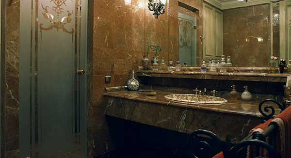 Стеклянная дверь отлично смотрится иронично-эклектичных классических интерьерах.