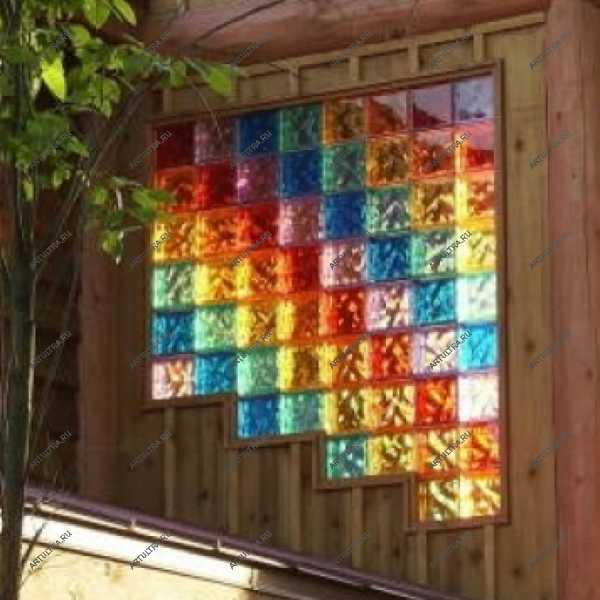 Проемы, заполненные стеклоблоками порой напоминают изысканные витражи