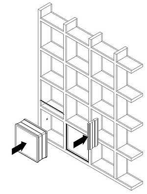 Эта технология монтажа достаточно простая. Иногда ее называют сухой. Стеклоблок фиксируется на специальные модульные системы. Такой способ позволяет максимально быстро выложить идеально ровные стены без отвесов и уровня. Обычно, каркасы выполнены из пластика или дерева, также встречаются алюминиевые и полиуретановые. Каждому блоку соответствует своя ячейка, ее размер подбирают в зависимости от габаритов стеклянного блока. Каркас крепится к стене шурупами, фиксируются также на полу и потолке. В ячейках блоки закрепляются посредством специальных резиновых прокладок. Такой способ монтажа не требует специальных навыков, но используется только для создания декоративных или внутрикомнатных перегородок, где не нужна хорошая звукоизоляция.