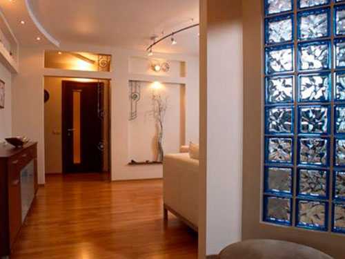 Помимо вышеперечисленных способов можно использовать декоративные стеклоблоки и более любопытным способом, сделав из них арку между коридором и комнатами. Используя светлые, отражающие части, вы легко превратите темную, узкую прихожую в светлое и радостное место, а выход в основную часть квартиры – в интригующий портал. Помимо стандартной арки, можно соорудить необычную рельефную стену, которая дополнит интерьер и украсит его, добавив изюминку общему виду.