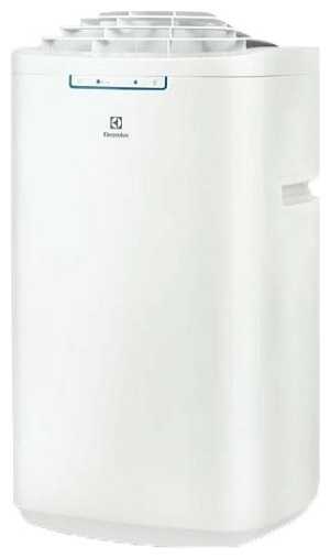 - Мобильные устройства выглядят как отдельный блок с воздухоотводом, через который забирается воздух из помещения и выводиться для охлаждения конденсатора на улицу. Их размеры начинаются от таких показателей: 60×40×30 сантиметров. У таких моделей существуют недостатки: они довольно сильно греются в районе воздухоотвода, у некоторых моделей накапливается конденсат, вывод воздуха из помещения несколько замедляет охлаждение из-за теплых потоков из других комнат, короткий отвод воздуха, относительно дорогой. Основным производителем качественных аппаратов считается «Electrolux», системы которого отличаются немного пониженным уровнем шума. Преимущества: