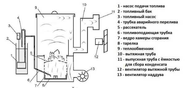 Конструкция отопителя на отработанном масле обладает определенной специфичностью: