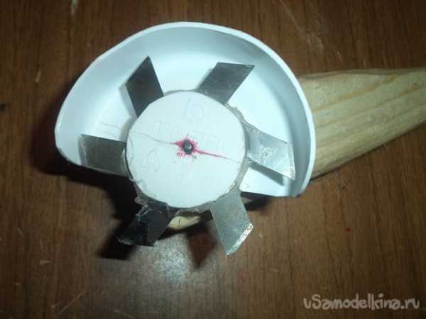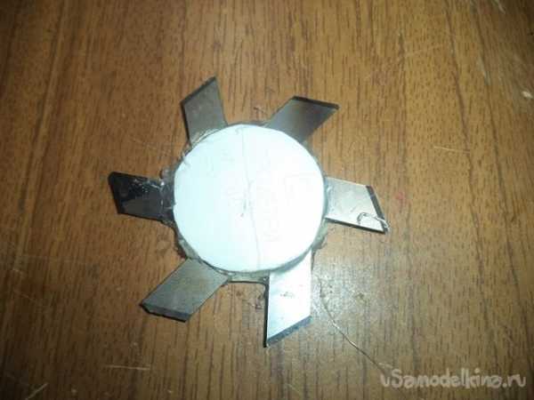 Π¨ΠΏΠΈΠ½Π΄Π΅Π»Ρ ΡΡΠ΅Π±ΡΠ΅ΡΡΡ ΠΎΡΠ½Π°ΡΡΠΈΡΡ ΠΏΠ΅ΡΠ΅Ρ ΠΎΠ΄Π½ΠΎΠΉ Π²ΡΡΠ»ΠΊΠΎΠΉ, ΠΊΠΎΡΠΎΡΠ°Ρ ΠΏΠΎΠ·Π²ΠΎΠ»ΠΈΡ ΠΏΠ»ΠΎΡΠ½ΠΎ Π·Π°ΠΊΡΠ΅ΠΏΠΈΡΡ Π½Π° Π½Π΅ΠΌ ΡΠ΅ΠΆΡΡΠΈΠΉ Π΄ΠΈΡΠΊ. ΠΡΡΠ»ΠΊΡ Π½Π°Π΄ΠΎ ΠΏΡΠΈΠΊΡΠ΅ΠΏΠΈΡΡ Π² Π½Π΅ΡΠΊΠΎΠ»ΡΠΊΠΈΡ ΠΌΠ΅ΡΡΠ°Ρ , ΡΠ΄Π΅Π»Π°ΡΡ ΡΡΠΎ ΠΌΠΎΠΆΠ½ΠΎ ΠΏΡΠΈ ΠΏΠΎΠΌΠΎΡΠΈ ΡΠ²Π°ΡΠΊΠΈ. ΠΠ° ΠΏΠΎΠ»ΡΡΠ΅Π½Π½ΡΠΉ ΡΠΏΠΈΠ½Π΄Π΅Π»ΡΠ½ΡΠΉ ΡΠ·Π΅Π» ΠΊΡΠ΅ΠΏΠΈΡΡΡ ΠΌΠ΅ΡΠ°Π»Π»ΠΈΡΠ΅ΡΠΊΠ°Ρ ΠΏΠ»Π°ΡΡΠΈΠ½Π°, ΠΈΠΌΠ΅ΡΡΠ°Ρ ΡΠΎΠ»ΡΠΈΠ½Ρ 5-6 ΠΌΠΌ. ΠΠ° Π²Π°Π»Ρ Π΄ΠΈΡΠΊΠ° ΡΡΠ΅Π±ΡΠ΅ΡΡΡ ΡΡΡΠ°Π½ΠΎΠ²ΠΈΡΡ Π·Π²Π΅Π·Π΄ΠΎΡΠΊΡ, ΡΠ°Π·ΠΌΠ΅Ρ ΠΊΠΎΡΠΎΡΠΎΠΉ Π±ΡΠ΄Π΅Ρ Π² 2 ΡΠ°Π·Π° ΠΌΠ΅Π½ΡΡΠ΅ Π·Π²Π΅Π·Π΄ΠΎΡΠΊΠΈ Π½Π° ΡΠΏΠΈΠ½Π΄Π΅Π»Π΅. ΠΠ°ΡΠ΅ΠΌ ΡΡΠΈ Π·Π²Π΅Π·Π΄ΠΎΡΠΊΠΈ ΡΠΎΠ΅Π΄ΠΈΠ½ΡΡΡΡΡ ΡΠ΅ΠΏΡΡ. ΠΠ»Ρ ΡΡΠΎΠ³ΠΎ ΠΌΠΎΠΆΠ½ΠΎ ΠΈΡΠΏΠΎΠ»ΡΠ·ΠΎΠ²Π°ΡΡ ΠΎΠ±ΡΡΠ½ΡΡ Π²Π΅Π»ΠΎΡΠΈΠΏΠ΅Π΄Π½ΡΡ ΡΠ΅ΠΏΡ. Π’Π΅ΠΏΠ΅ΡΡ ΠΌΠΈΠ½ΠΈ-ΡΠΈΡΠΊΡΠ»ΡΡΠ½ΡΡ ΠΏΠΈΠ»Ρ ΠΌΠΎΠΆΠ½ΠΎ ΡΡΠΈΡΠ°ΡΡ Π³ΠΎΡΠΎΠ²ΠΎΠΉ ΠΈ ΠΏΡΠΈΡΡΡΠΏΠ°ΡΡ ΠΊ Π΅Π΅ ΡΠΊΡΠΏΠ»ΡΠ°ΡΠ°ΡΠΈΠΈ.