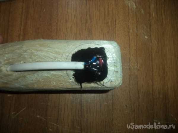 ΠΠ°Π»Π΅Π΅ Ρ ΠΏΠΎΠΌΠΎΡΡΡ ΡΠ»Π΅ΠΊΡΡΠΈΡΠ΅ΡΠΊΠΎΠΉ Π΄ΡΠ΅Π»ΠΈ ΡΠ²Π΅ΡΠ»ΠΈΠΌ ΡΡΠ½Π½Π΅Π»Ρ Π΄Π»Ρ ΠΏΡΠΎΠ²ΠΎΠ΄Π°, ΡΡΠΎΠ±Ρ ΠΏΡΠΎΠ²ΠΎΠ΄ ΠΏΠΈΡΠ°Π½ΠΈΡ Π±ΡΠ» ΡΠΊΡΡΡ Π²Π½ΡΡΡΠΈ Π΄Π΅ΡΠ΅Π²ΡΠ½Π½ΠΎΠΉ ΡΡΡΠΊΠΈ.