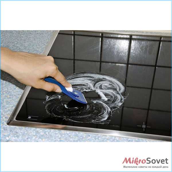 Убежавшая во время кипения пища не может оставить на гладкой тёплой поверхности панели заметных следов. Их просто нужно убрать с помощью губки, а потом вытереть так же, как поверхность стола.