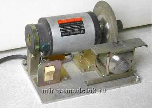 Мотор PIV MTM, из лентопротяги вертикального магнитофона, болгарский. Таходатчик удален, на его месте закреплен гибкий вал бормашины. Вращение от оси мотора перадается на вал с помощью туго надетой пружины. Справа на оси укреплен алмазный диск для правки боров.Весь механизм закреплен в держателе с двумя степенями свободы и легко вращается влево-вправо, вперед-назад. Вся конструкция подвешена на рабочем столе справа вверху, не мешает работе. Можно утопить мотор в стол так, чтобы шланг бормашины выходил вертикально вверх.