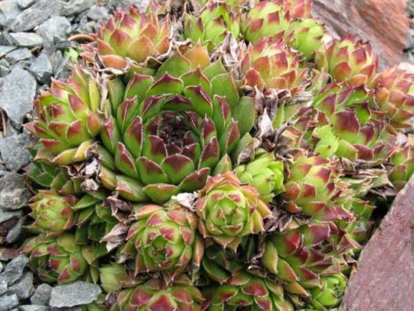 Молодило, или каменная роза– уместное дополнение в любом саду, его высаживают и в контейнеры, и в альпинарии, создают монолитные цветники из молодил разных сортов. Выращивают их в основном из-за плотных листьев, различных расцветок.