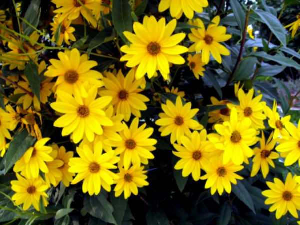Этот многолетний цветок знаком всем! Он как раз из тех растений, которые «растут сами». «Золотые шары» − это народное название. На самом деле цветок называется рудбекия рассеченная. По своей сути это – злостный сорняк, растет везде, всегда и даже при полном отсутствии ухода. За ней нужно следить, чтобы она не заполонила весь участок и не выместила другие виды декоративных многолетников.