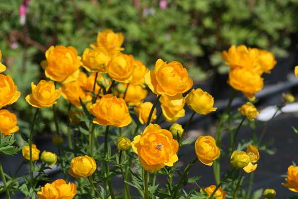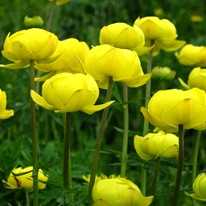 - Купальница. Травянистое многолетнее растение относится к семейству лютиковых. Известно около 20 видов этого цветка, предпочитающего расти на влажной почве. Листья у купальницы пальчатораздельные либо лопастные, образование цветоносов происходит на протяжении двух лет. В первый год формируется прикорневая розетка, на второй год вырастает побег с цветком на верхушке. Распустившиеся бутоны имеют разный окрас — от зеленоватого до желто-оранжевого. Запах привлекает пчел, плод — листовка, семена окрашены в черный цвет. Купальница любит расти как в затененных, так и в солнечных местах, любит открытые участки и регулярные поливы.