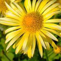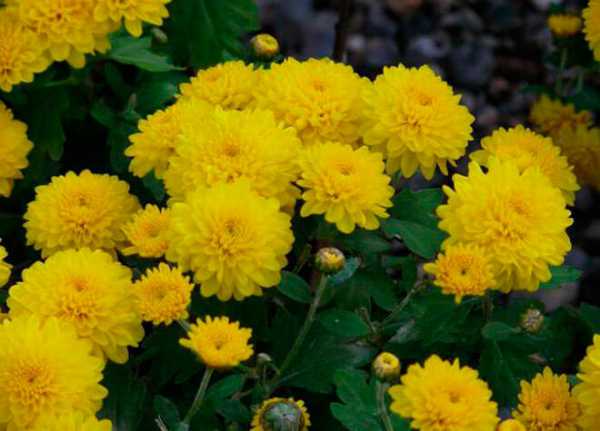 Для сада с желтой палитрой подойдут немахровый сорт ‘Осенний’, цветущий с августа до заморозков ярко-желтыми соцветиями с характерным медовым ароматом (диаметр 7 см) на сильном компактном кусте высотой 55-60 см, и ‘Бордюрная желтая’ с ароматными ярко-золотистыми соцветиями (диаметр 6,5 см) на небольшом кусте высотой 45 см. В средней полосе хризантемы на зиму укрывают или выкапывают. Корейские хризантемы великолепно подходят для срезки, без них не обходится ни одна осенняя аранжировка. Растение легко переносит пересадку, и, если вы, уезжая с дачи в октябре, пересадите из грунта в горшок цветущую хризантему, она на подоконнике в городской квартире еще несколько недель будет напоминать о лете.