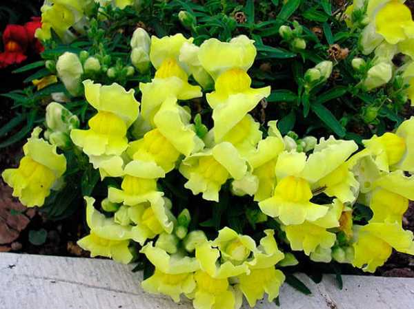 Прекрасны композиции из цветущих антирринумов, известных у нас как львиный зев. Для нашей гаммы подойдут сорта с желтыми цветками: Yellow’, цветущий в июне-июле, и ‘Super Jet’, раскрывающий свои цветки в июле.
