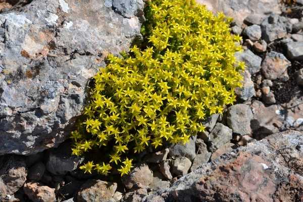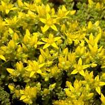 Говоря о почвопокровных растениях, формирующих желтую палитру летнего сада, нельзя не отдать должного многолетнему очитку едкому (Sedum acre): он выстилает почву ветвистыми стеблями с мясистыми листочками-шильцами, над которыми возвышаются щитковидные соцветия многочисленных мелких ярко-желтых цветков. Цветение продолжается с июня до середины июля. Молодые побеги образуются до глубокой осени. Очитки легко размножить делением кустиков рано весной или осенью, а также зелеными черенками и семенами, но в этом случае цветение наступает лишь на 2-3 год.