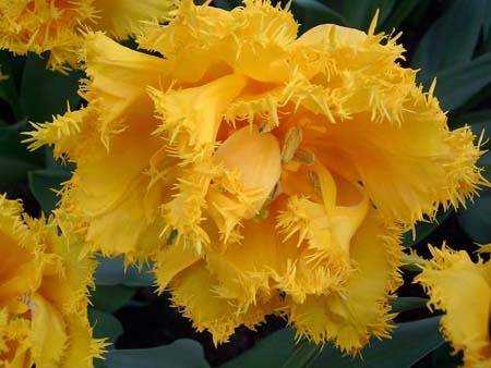 Сорт «Монте-Карло» представлен махровыми тюльпанами, видеть которые можно выше на фотографии. Замечательные цветы окрашены в лимонно-желтый цвет и источают сладкий, приятный аромат. Высота каждого тюльпана достигает 50 см, диаметр раскрывшегося бутона равен 10-12 см. Этот замечательный цветок является воплощением легкости и изящества. Высаживая тюльпаны этого сорта по 40-45 луковиц на 1 м2 земли, можно получить очаровательную клумбу, подобную желтому облаку.