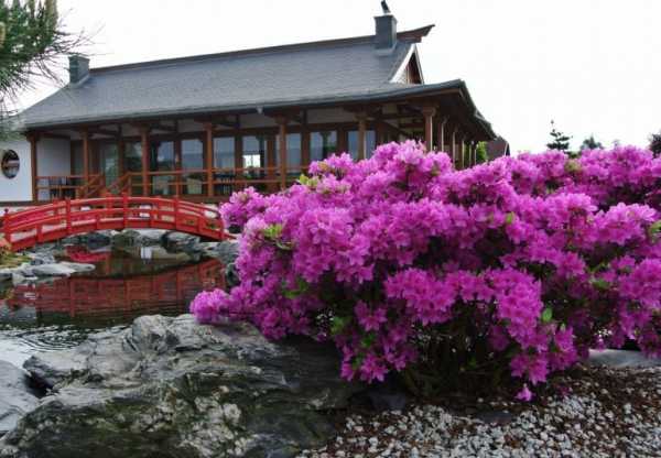 - Если существует возможность много работать в саду, стоит выбрать экзотические, требовательные кустарники, создающие отличную витрину сада.