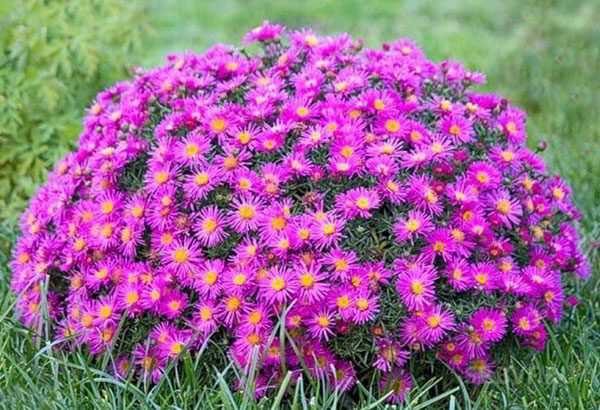 Также советуем обратить внимание на бордюрные кустарники многолетники, например, на астру альпийскую, способную вырасти до тридцати сантиметров. Цветы этого сорта астры имеют желтую сердцевину и лепестки розоватого или синего оттенка. Предпочитает светлые местности или полутень и цветут в течение июня и июля.