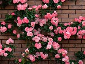 - Плетистая роза — высаживается для украшения изгородей. Встречается в красном, нежно-розовом и белом цвете.
