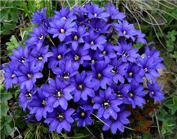 - еще один пример неприхотливого растения – горечавка. В период цветения (с июля до конца августа) на ней появляются яркие синие колокольчики. Горечавка выдерживает суровый климат и после холодной зимы цветет как раньше даже без особого ухода;
