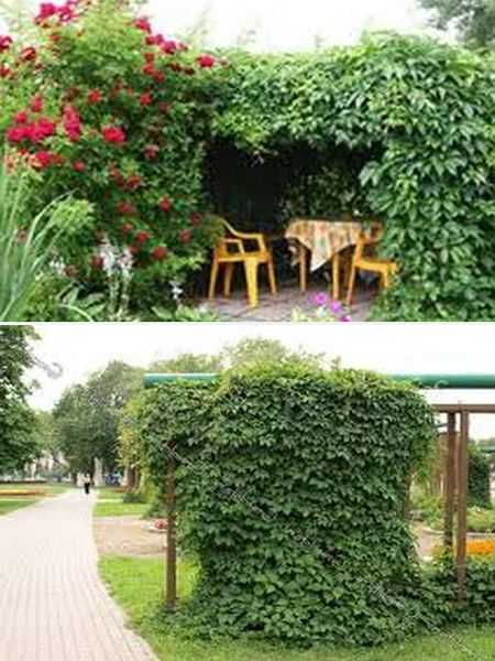 Создавая живую изгородь вокруг участка или ограждение беседки в саду, часто используют этот вид представителей флоры. Примером вьющихся многолетних растений для забора являются: