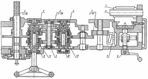 Рис.6 Схема установки сменных зуб- Рис.7 Схема коробки подач 7