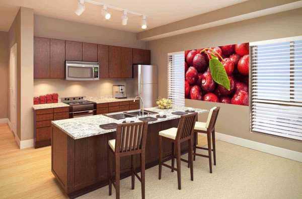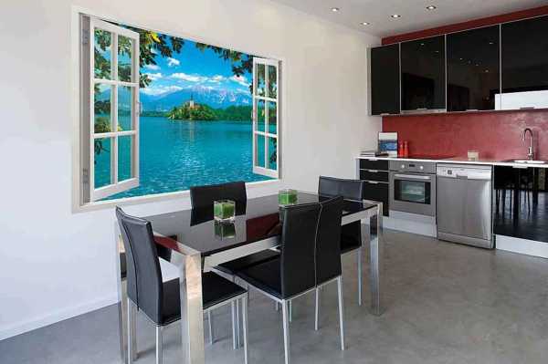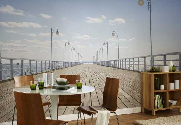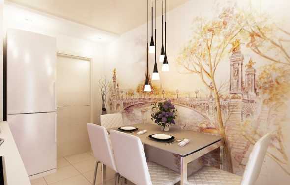 Изюминкой интерьера кухни будут фотообои, способные визуально расширить пространство.