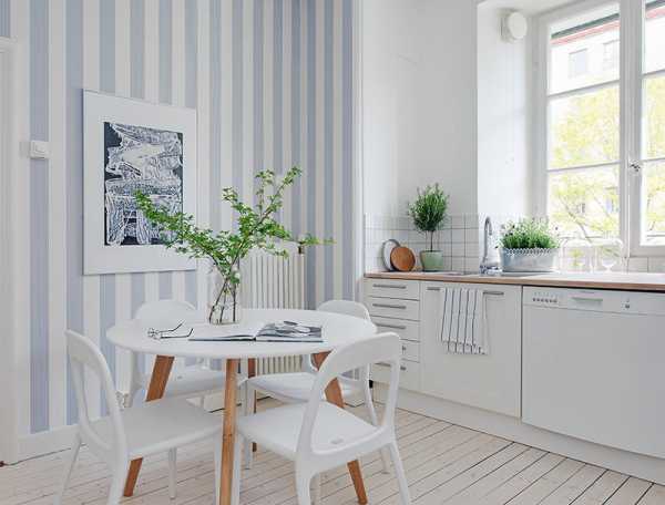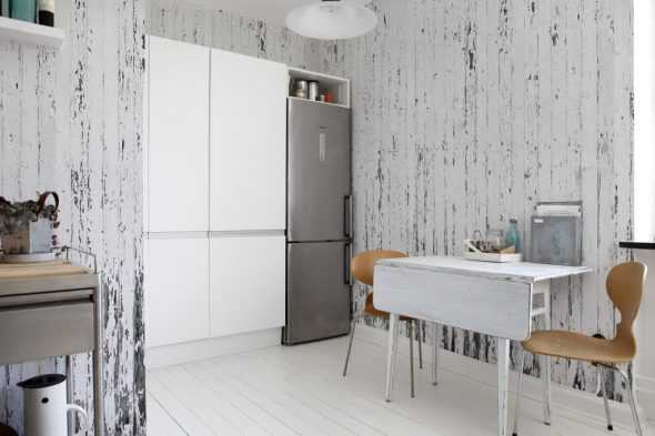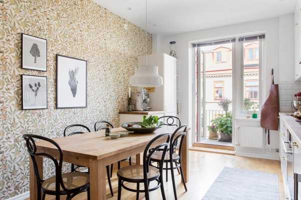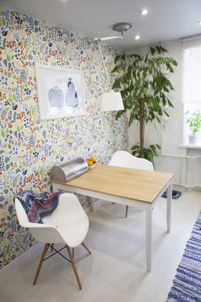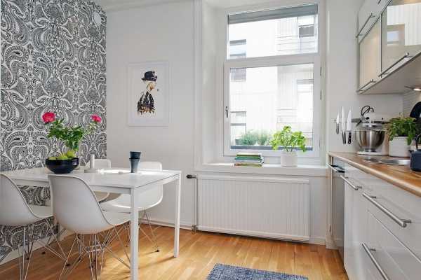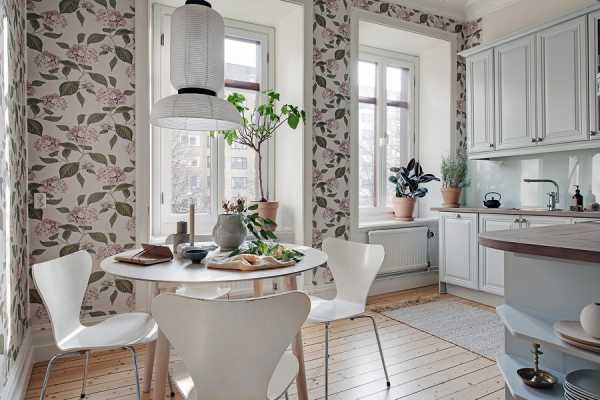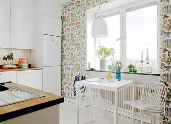 Идеальные обои для маленькой кухни должны быть в светлых тонах, с мелким принтом и подходить по стилистике к общему оформлению интерьера.