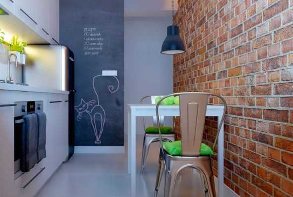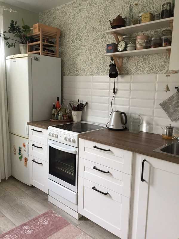 Учитывая маленькую площадь кухни, важно подобрать такую отделку для стен, чтобы помещение не стало еще меньше.