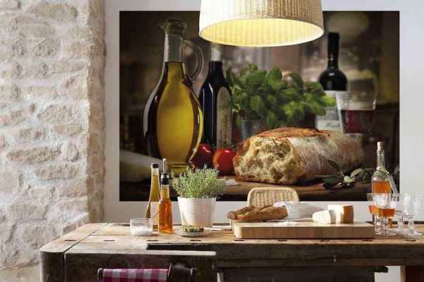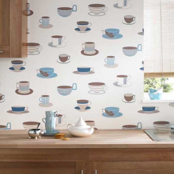 Обои чаще всего встречаются в шаблонах. На кухне мотивы, связанные с едой, хороши, например, чашки с кофе, красочные фрукты и овощи, хлеб. Стоит играть с цветами — аппетит стимулируется красным, поэтому можете украсить стену сочными обоями над столом. Если на кухне также есть столовая, помните, зелень — этот цвет, который заставляет блюда выглядеть хорошо. В свою очередь, коричневый и бежевый делают комнату уютной. Если у вас есть белая кухня, вы найдете темные обои в этом сочетании великолепными. Когда у вас много красочного оборудования, выберите пастельные обои. 3D-обои становятся все более популярными, представляя, например, морские пейзажи или рынок фруктов, специи.
