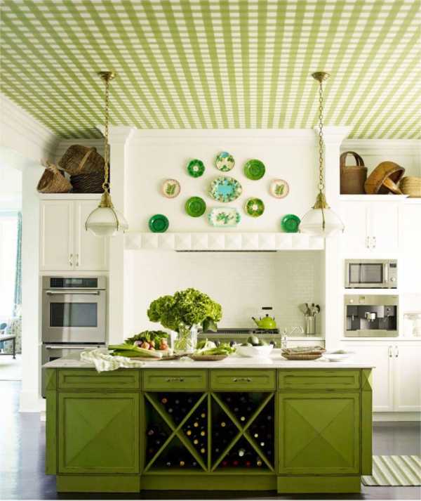 Зеленый имеет огромную силу расположения. Данный цвет добавляет энергию и в то же время вводит спокойствие и гармонию. Вы можете выбирать из разных оттенков: от пастельной мяты через сочную известь до более теплых оливковых цветов. Самым простым способом быстрого преобразования интерьера с использованием этих расцветок являются классические зеленые обои. Они могут быть в одном выбранном оттенке или сочетать несколько из них, например, через полосатый дизайн. Стоит помнить, что вертикальные полосы оптически увеличивают небольшой интерьер кухни, их можно использовать для украшения всей комнаты или только выбранной стены, даже потолка.