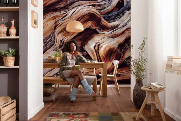 Оригинальным акцентом станут обои с имитацией дерева или камня.