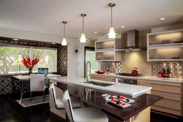 - контрастных цветов, что подчеркнет современность и незаурядность кухни;