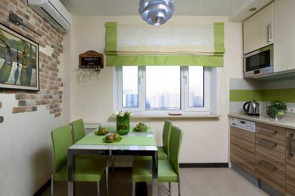 - выбирайте пастельные тона, а оригинально оформить помещение вам поможет кухонный гарнитур яркого цвета и шторы в тон мебели;