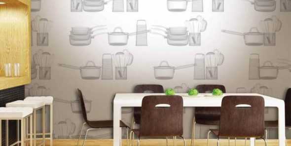 - Если обои для кухни будут легко мыться, в том числе с применением химических средств, это станет существенным бонусом для хозяев.