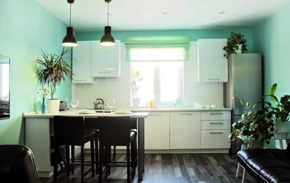 При выборе отделки для стен важно обращать внимание на количество света в комнате, цветовую гамму мебели, фартук для рабочей зоны, аксессуары и светильники.