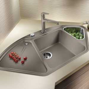 Данная система, не только отлично вписывается в небольшие кухонные помещения, но и придает обстановке особого модного антуража. Угловые раковины считаются менее вместительными, но при этом достаточно функциональными.
