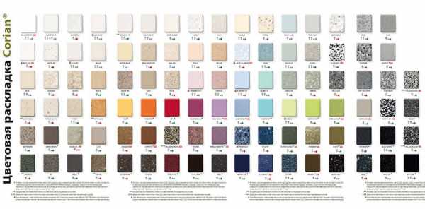- Кориан. Имеет хорошие водоотталкивающие качества и устойчивость к загрязнениям. Изделия из кориана довольно легко чистятся и надолго сохраняют презентабельный вид.