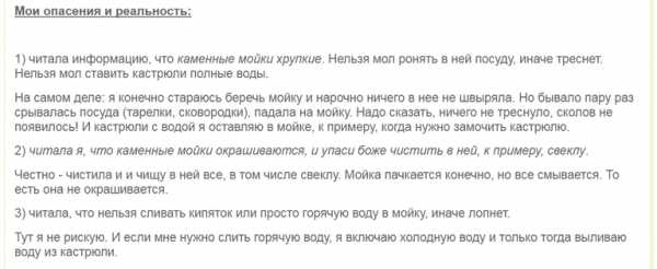 Вот пример реального отзыва на тему выбора между мойкой из искусственного камня и нержавейки.