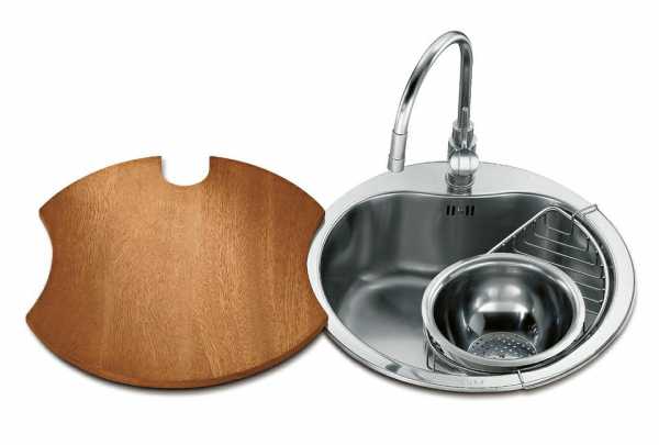 Современная мойка — это многофункциональный рабочий центр, к которому можно выбрать массу полезных аксессуаров. Некоторые из них кажутся излишними или непривычными, однако, стоит только попробовать, и окажется, что, например, совмещение мойки и разделочной доски экономит массу времени и сил. В круглых моделях доска обычно накладывается сверху, полностью перекрывая чашу, в прямоугольных или двойных мойках, может скользить, сдвигаясь в сторону.