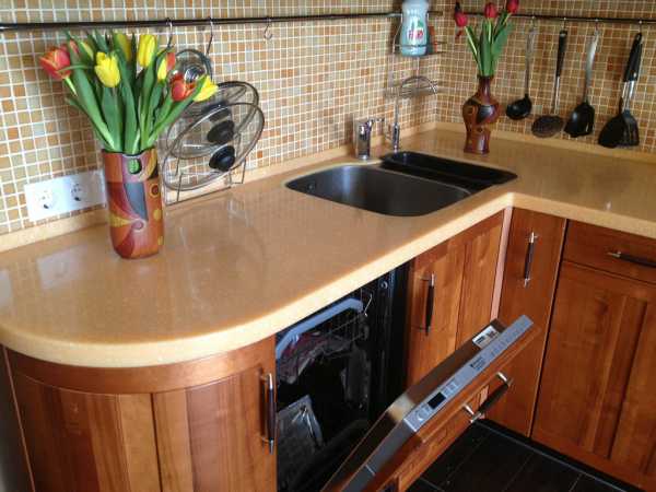 Совмещенные столешница и раковина достаточно удобное решение для обустройства рабочей зоны кухни