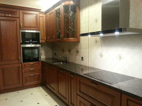 Распространенный вариант установки в кухне с единой столешницей. Если столешница сделана из распространенного ламинированного ДСП, ДВП или дерева, после долгих мучений можно вырезать необходимое отверстия толщиной 40 мм. без специального инструмента и установить самостоятельно.