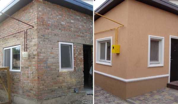 Фасад отделывается декоративной штукатуркой и красится.