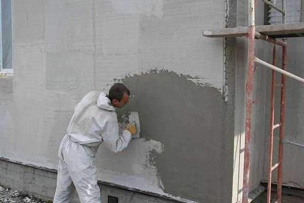 Используется «дышащая» штукатурка, после нанесения она не должна осыпаться.