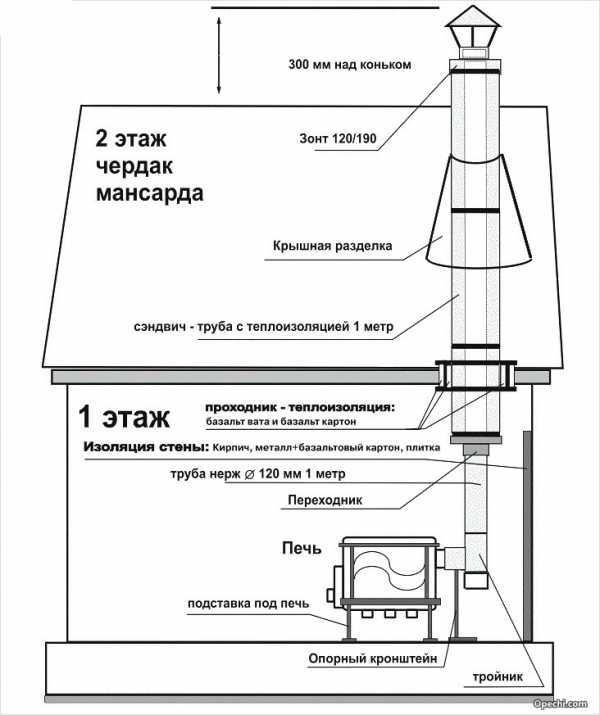 Схема внешней установки дымоходаopechi.com