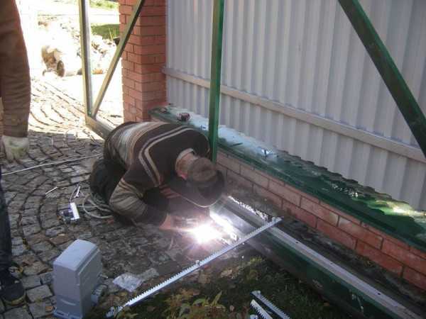 Рейка приваривается на поверхность трубы, далее она протягивается за полотно. После монтажа рейки производится проверка ее работоспособности. Все элементы, на котором фиксируется автоматика привариваются повторно. Между приводом и поверхность шестерни оставляется зазор размером в один миллиметр.