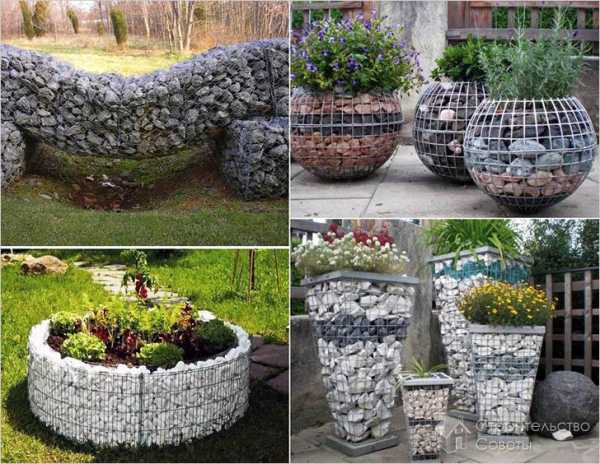 щебень, галька, или даже кольца деревянных бревен. При помощи габионов можно сооружать на участке самые разнообразные конструкции, причем сама технология